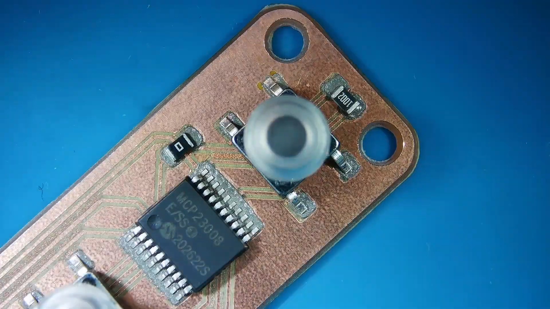 Once the milling operations are done, [Mikey] switches to his xTool F1 20W fiber laser. The blanks are placed on the laser’s bed, the CNC-drilled through holes are used as fiducials to align everything, and the laser gets busy. For the smallish boards [Mikey] used to demonstrate his method, it only took 90 seconds to cut the traces. He also used the laser to cut a solder paste stencil from thin brass shim stock in only a few minutes. The brief video below shows the whole process and the excellent results.