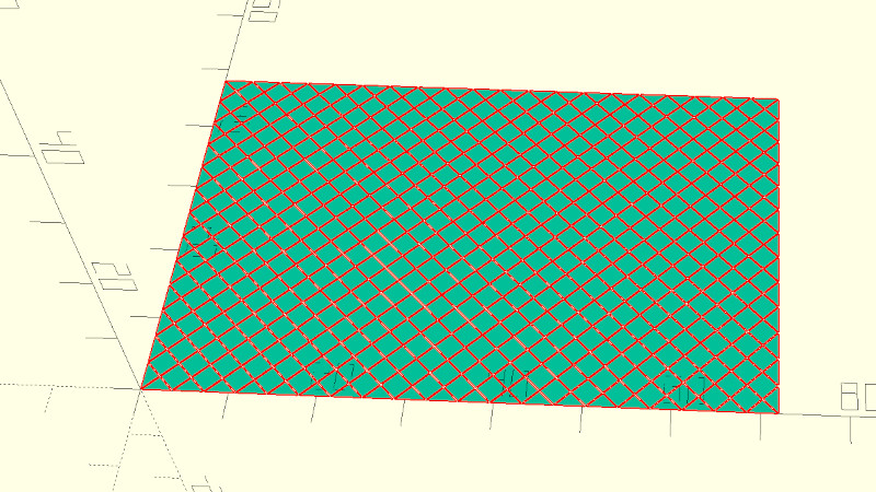 It starts with an OpenSCAD script (originally written by Texas Instruments, and released as open source) that creates a diamond grid, which can be edited to the required dimensions and resolution. This is then exported as a DXF file, and the magic begins in a Python script. After adjustment of variables to suit, it finishes with an Eagle-compatible board file which should be importable into other EDA packages.