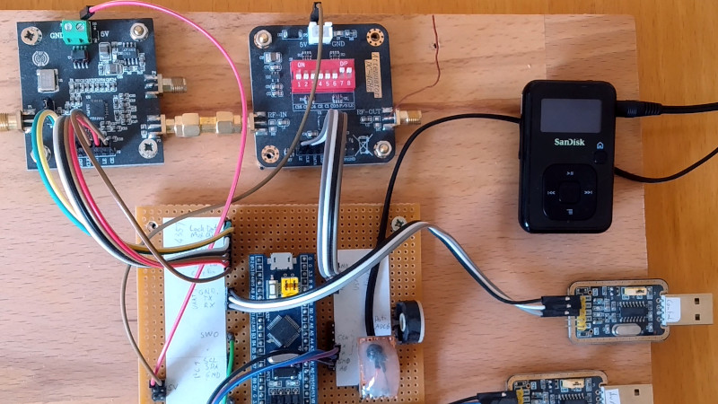 The hardware is relatively straightforward; an SI5351 clock generator provides the reference for an ADF4351 PLL and VCO, which in turn feeds a PE4302 digital attenuator. It’s all driven from an STM32F103 microcontroller which handles the signal processing. Internally this means conventionally creating I and Q streams from the incoming audio, then an algorithm to generate the phase and amplitude for polar modulation. These are fed to the PLL and attenuator in turn for FM and AM modulation, and the result is SSB. It’s only suitable for narrow bandwidths, but it’s a novel and surprisingly simple deign.