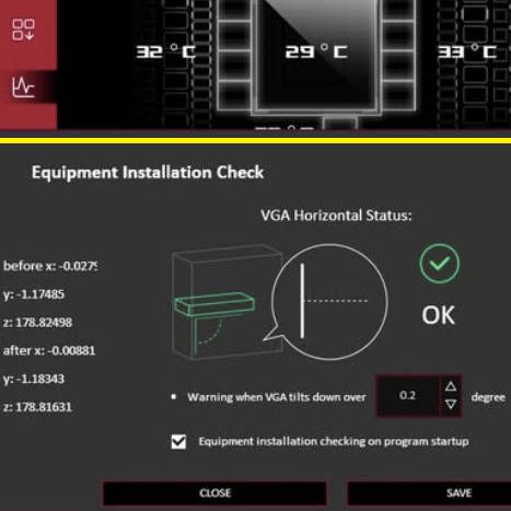 The software allows you to set a sag angle at which you receive a notification, which would presumably either allow you to turn off the system and readjust the GPU, or be forewarned when it is about to rip itself loose from the PCIe slot and crash to the bottom of the case.