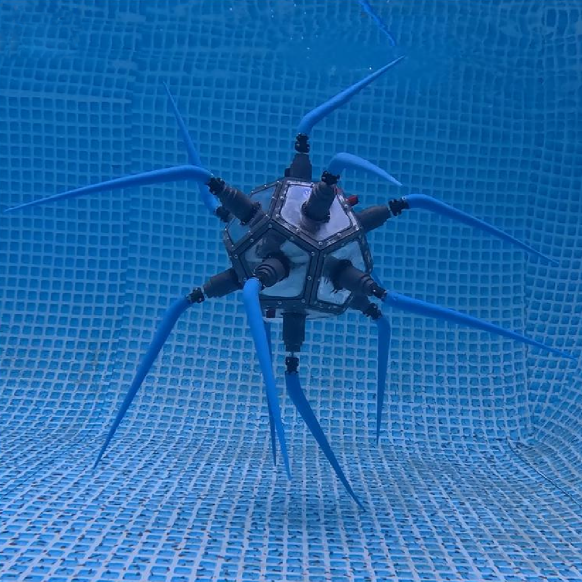 ZodiAq sports a soft flexible appendage from each of its twelve faces, but they aren’t articulated like you might think. Despite this, the device can crawl and swim.
