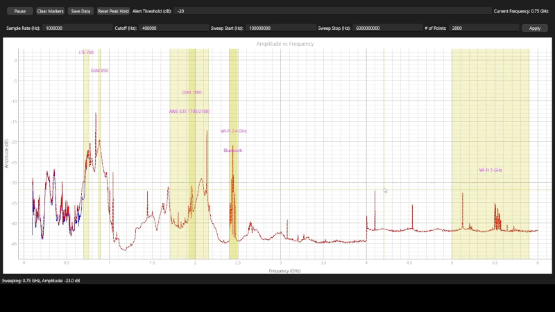 While it may seem that 100 MHz is a bit limiting, there’s plenty of activity in that range, including WiFi, Bluetooth, radio systems, both commercial and amateur, and even cell phones.