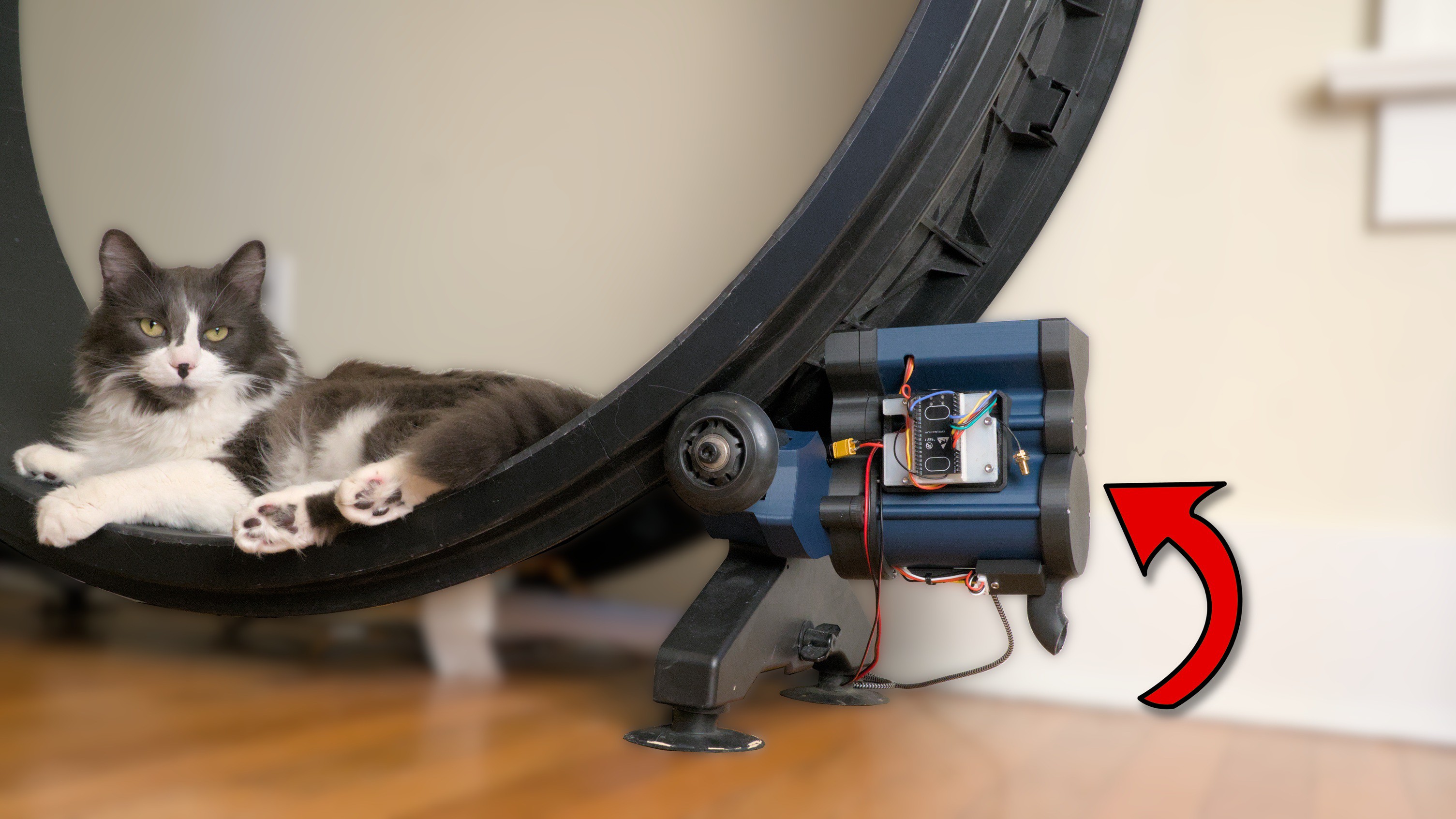 The wheel itself is an off the shelf model called “One Fast Cat”; apparently these are quite cheap second hand as most cats don’t really see the point in exercise. [MethodicalMaker] glued evenly-spaced magnets along the rim in order to track the rotation with a hall effect sensor.  A microcontroller is watching said sensor, and is programmed to release the treats after counting off a set number of revolutions. Control over the running distance and manual treat extrusion is via web portal, but the networking code had difficulty on the Arduino R4 [MethodicalMaker] started with, so he switched to an ESP32 to get it working.