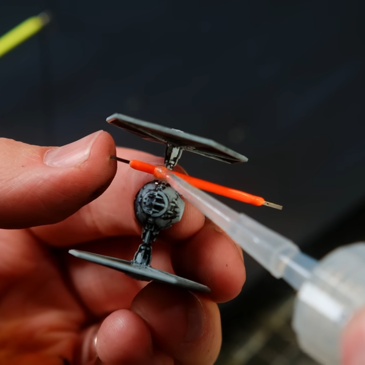 [Boylei] shows that those little LED filament strips make great freeze-frame blaster shots in a space battle diorama. That’s neat and all, but what we really want to highlight is a simple tip [Boylei] shares about working with these filament strips: how to glue them.