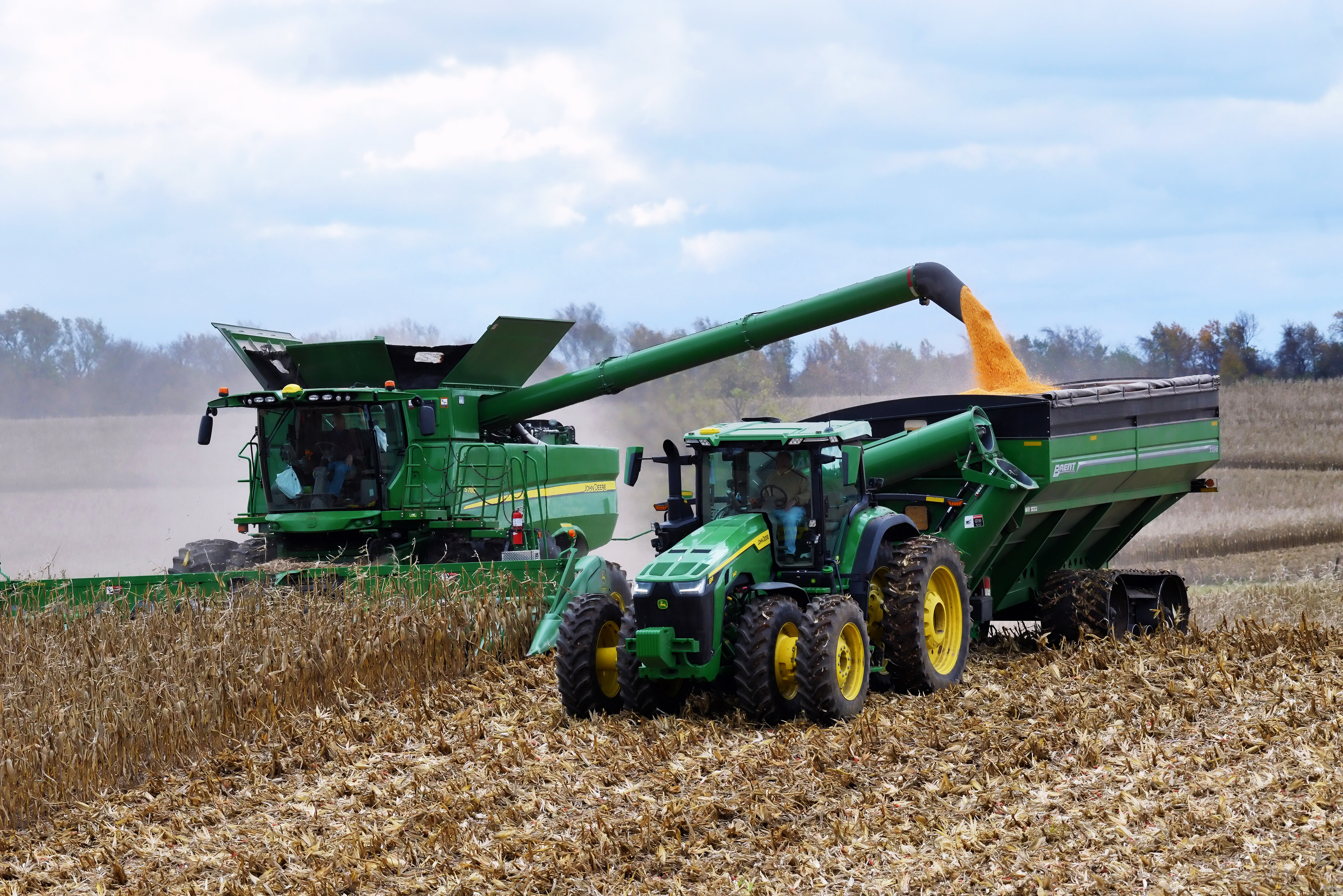 Corn harvest in progress. You’ve got to burn a lot of diesel to make ethanol. Credit: dvande – stock.adobe.com