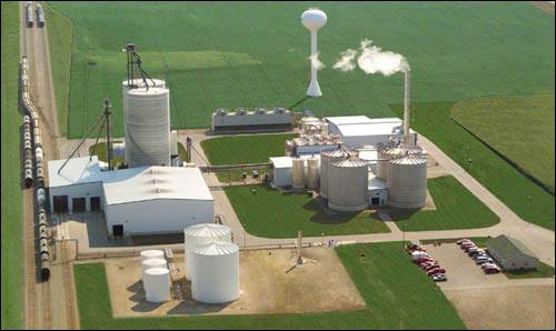 The Lakota Green Plains ethanol plant in Iowa. Ethanol plants look a lot like small petroleum refineries and share some of the same equipment. Source: MsEuphonic, CC BY-SA 3.0.
