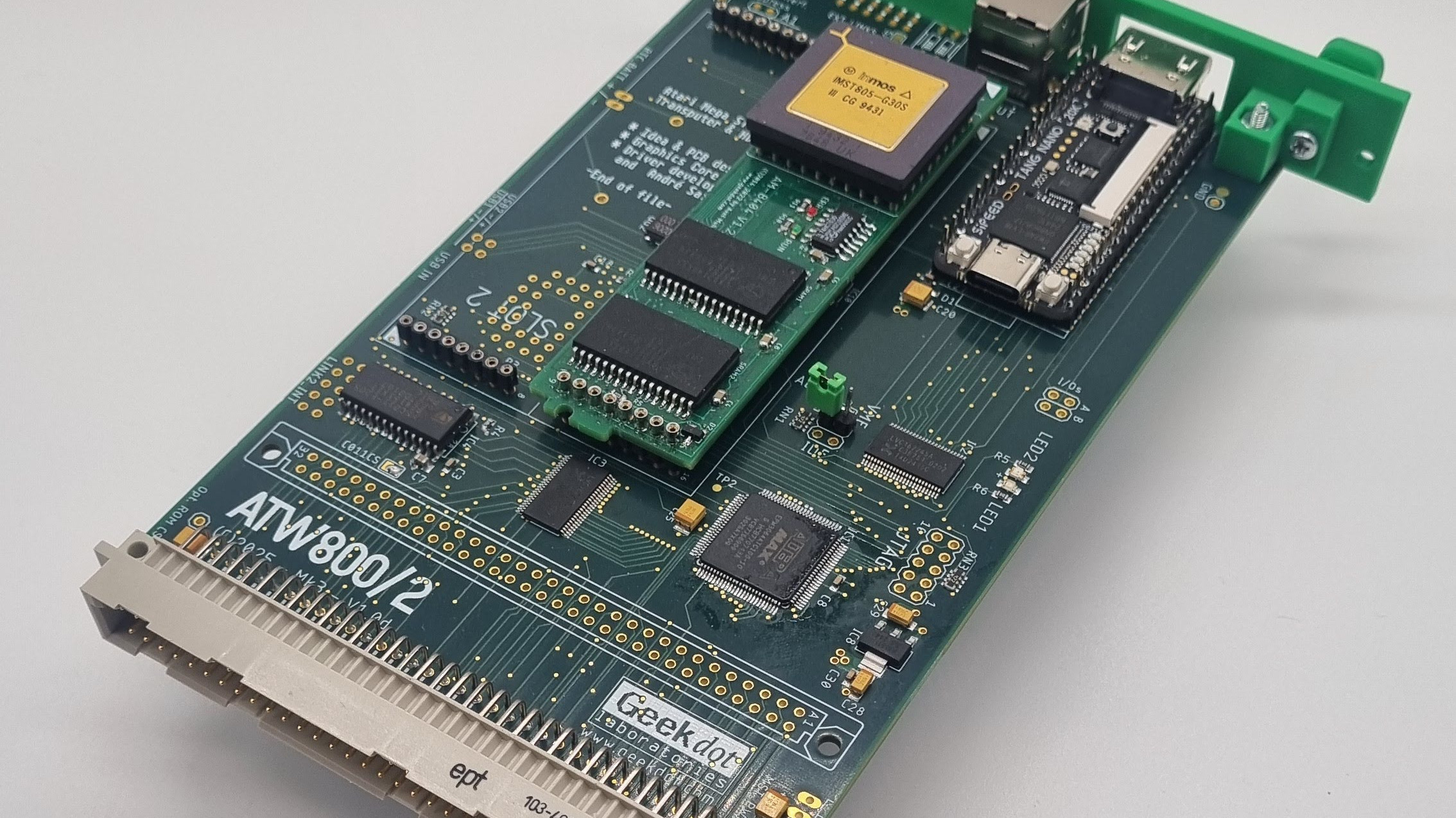Has anybody heard of the ATW800 transputer workstation? The one that used a modified Atari ST motherboard as a glorified I/O controller for a T-series transputer? No, we hadn’t either, but transputer superfan [Axel Muhr] has created the ATW800/2, an Atari Transputer card, the way it was meant to be.
