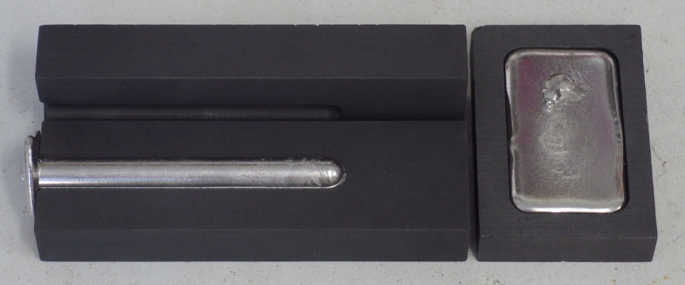 The experiments investigated a variety of bismuth alloys, and tried to determine the effects of adding lead, antimony, tin, and zinc. [Simplifier] mixed together each alloy in an electric furnace, cast it into a cylindrical mold, machined the resulting rod to a uniform length, and used tin-bismuth solder to connect each end to a brass electrode. To test each composition, one end of the cylinder was cooled with ice while the other was held in boiling water, then resistance was measured under this known temperature gradient. According to the Wiedemann-Franz law, this was enough information to approximate the metal’s thermal conductivity.