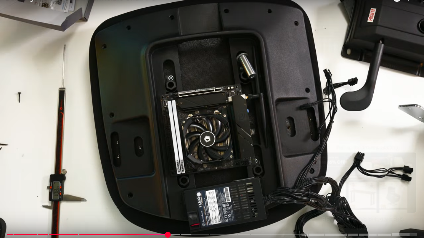 This chair has very respectable specs: a Ryzen 7 9800XD, 64GB of ram and a RTX 4060 GPU, but you’d never know it. The secret is using 50 mm aluminum standoffs between the wooden base of the seat and the chair hardware to create room for low-profile everything. (The GPU is obviously lying sideways and connected with a PCIe riser cable, but even still, it needed a low-profile GPU.) This assemblage is further hidden 3D printed case that makes the fancy chair donated from [Basically Homeless]’s sponsor look basically stock, except for the cables coming out of it. It’s a very niche project, but if you happen to have the right chair, he does provide STLs on the free tier of his Patreon.