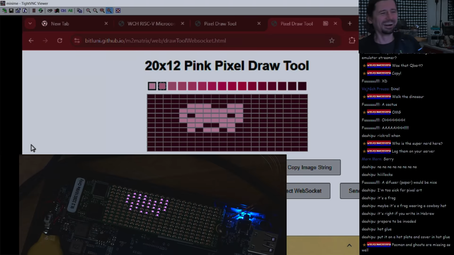 He then hooked up the serial interface to a CH32V208 microcontroller, which was tasked with driving a 12×20 monochrome LED matrix. Even better, he was even able to set the microcontroller up to make it programmable upon first plugging it into a machine, thanks to its bootloader supporting serial programming out of the box. Some teething issues required rework and modification, but soon enough, [bitluni] had the LEDs blinking with the best of them. He then built a web-based drawing tool that could send artwork over serial direct to the matrix.