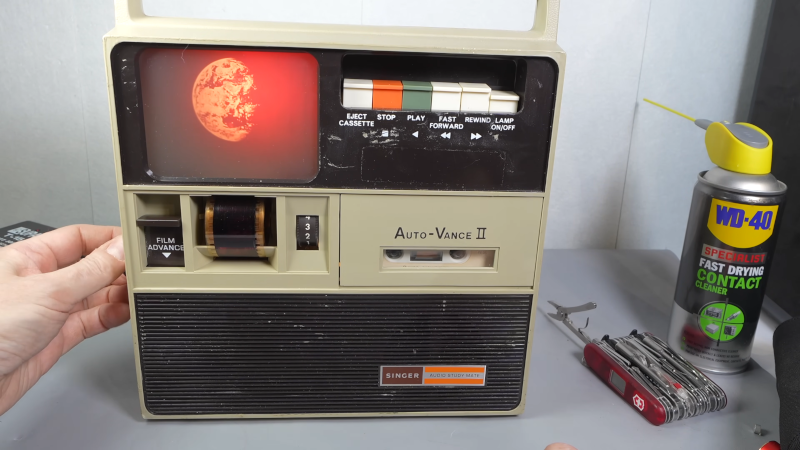 When you think of Singer, you usually think of sewing machines, although if you are a history buff, you might remember they diversified into calculators, flight simulation, and a few other odd businesses for a while. [Techmoan] has an unusual device from Singer that is decidedly not a sewing machine. It is a 1970s-era multimedia briefcase called the Audio Study Mate. This odd beast, as you can see in the video below, was a cassette player that also included a 35mm filmstrip viewer. Multimedia 1970s-style!