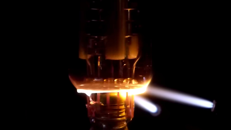 The tube in question isn’t one of the earlier “roundies” you would find on an American color TV from the ’50s or early ’60s, instead it’s one of the first generation of rectangular (ish) screens. It’s got an under-performing blue gun, so they’re replacing the electron gun assembly. Cutting the neck of the tube, bonding a new neck extension, and sealing in a new gun assembly is not for the faint-hearted, and it’s clear they have both the specialist machinery and the experience required for the job. Finally we see the reconditioned tube put back into the chassis, and are treated to a demonstration of converging the three beams.