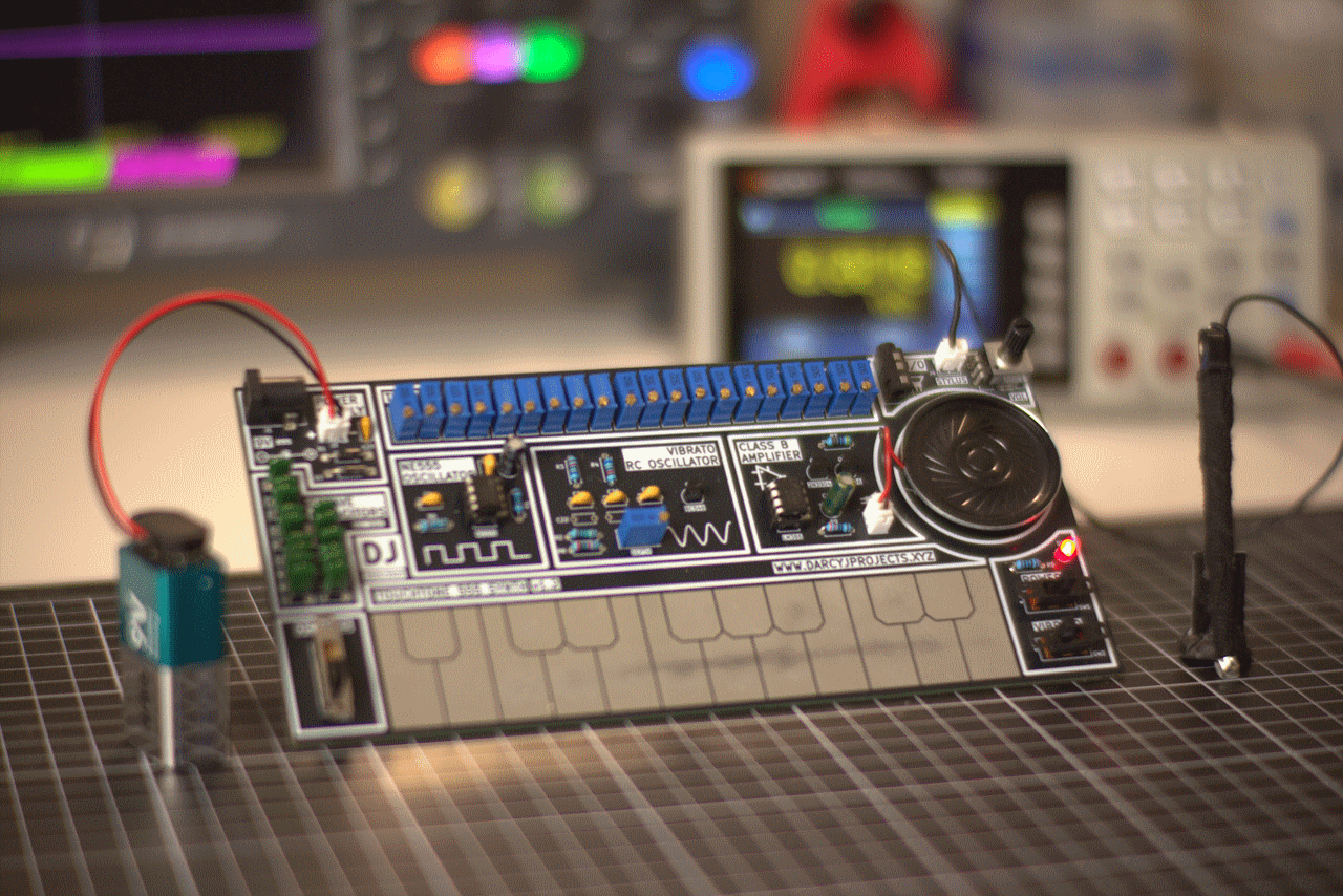 Since each circuit is separately laid out and indicated on the PCB [Darcy] designed in KiCad for this project. Between that and everything being thru-hole, it seems like [Darcy] has the makings of a lovely training kit. If you’re interested in rolling your own, the files are on GitHub under a CERN-OHL-S v2 license, and don’t forget to check out the demo video embedded below to hear it in action.