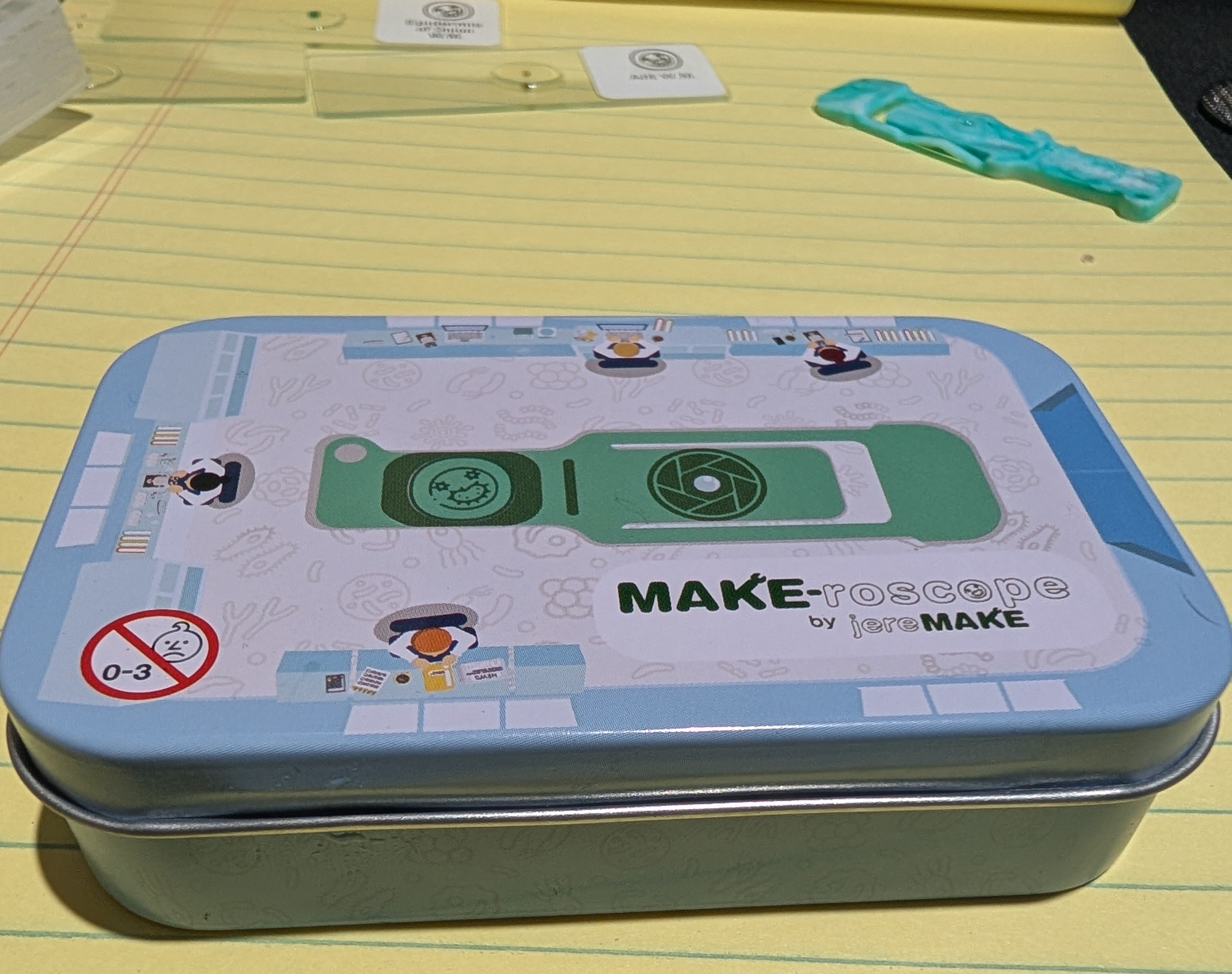 What I didn’t find in my box were cover slips, any way to prepare specimens, and — perhaps most importantly — clear instructions. There are some tiny instructions on the back of the tin and on the lens cloth paper. There is also a QR code, but to really get going, I had to watch a video (embedded below).