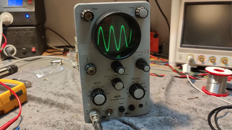 We’re suckers for a vintage electronic teardown here at Hackaday, and thus it’s pleasing to see [Thomas Scherrer OZ2CPU] with a 1962 AEG oscilloscope on his bench. It’s definitely seen better days, and is a single-trace 10 MHz unit of the type you might have seen in a typical general purpose electronics lab back in the day.