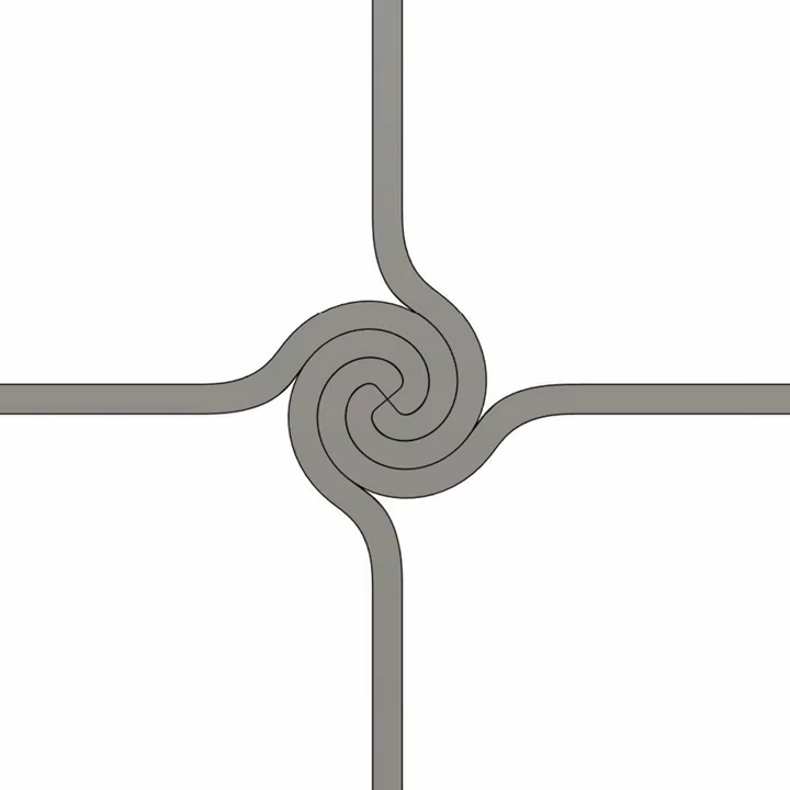 The ends of each part form a tight, spiral-shaped joint when assembled with its neighbors. Parts connect solely to themselves without any need of fasteners or adhesives.