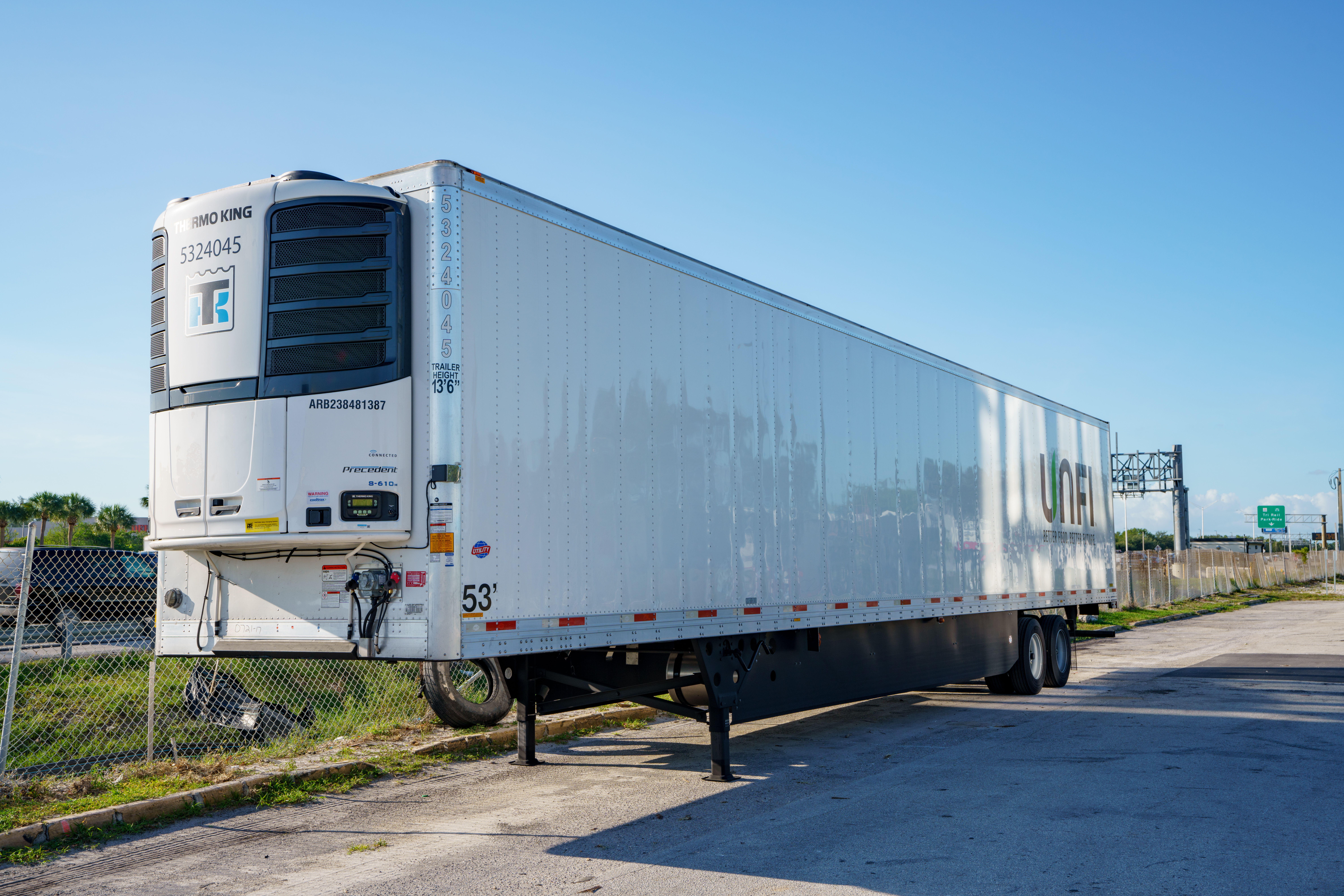 The trailer body itself is carefully engineered, with thick insulation to minimize heat transfer to and from the outside environment while maximizing heat transfer between the produce and the air inside the trailer. For maximum cooling — or heating; if a load of bananas has to be kept at their happy place of 46°F while being trucked across eastern Wyoming in January, the refrigeration unit will probably have to run its cycle in reverse to add heat to the trailer — the air must reach the back of the unit. Reefer units use flexible ducts in the ceiling to direct the air 48 to 53 feet to the very back of the trailer, where it bounces off the rear doors and returns to the front of the trailer with the help of channels built into the floor. Shippers need to be careful when loading a reefer to obey load height limits and to correctly orient pallets so as not to block air circulation inside the trailer.