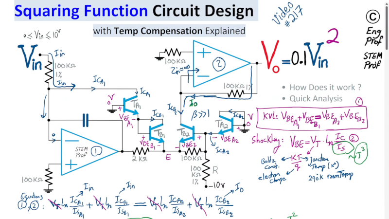 There’s more to it, of course, but that’s the gist of it. You can dig into the math by watching the video. If the KCL references are fuzzy for you, here’s a refresher. Squaring a voltage would be pretty important for an analog computer.