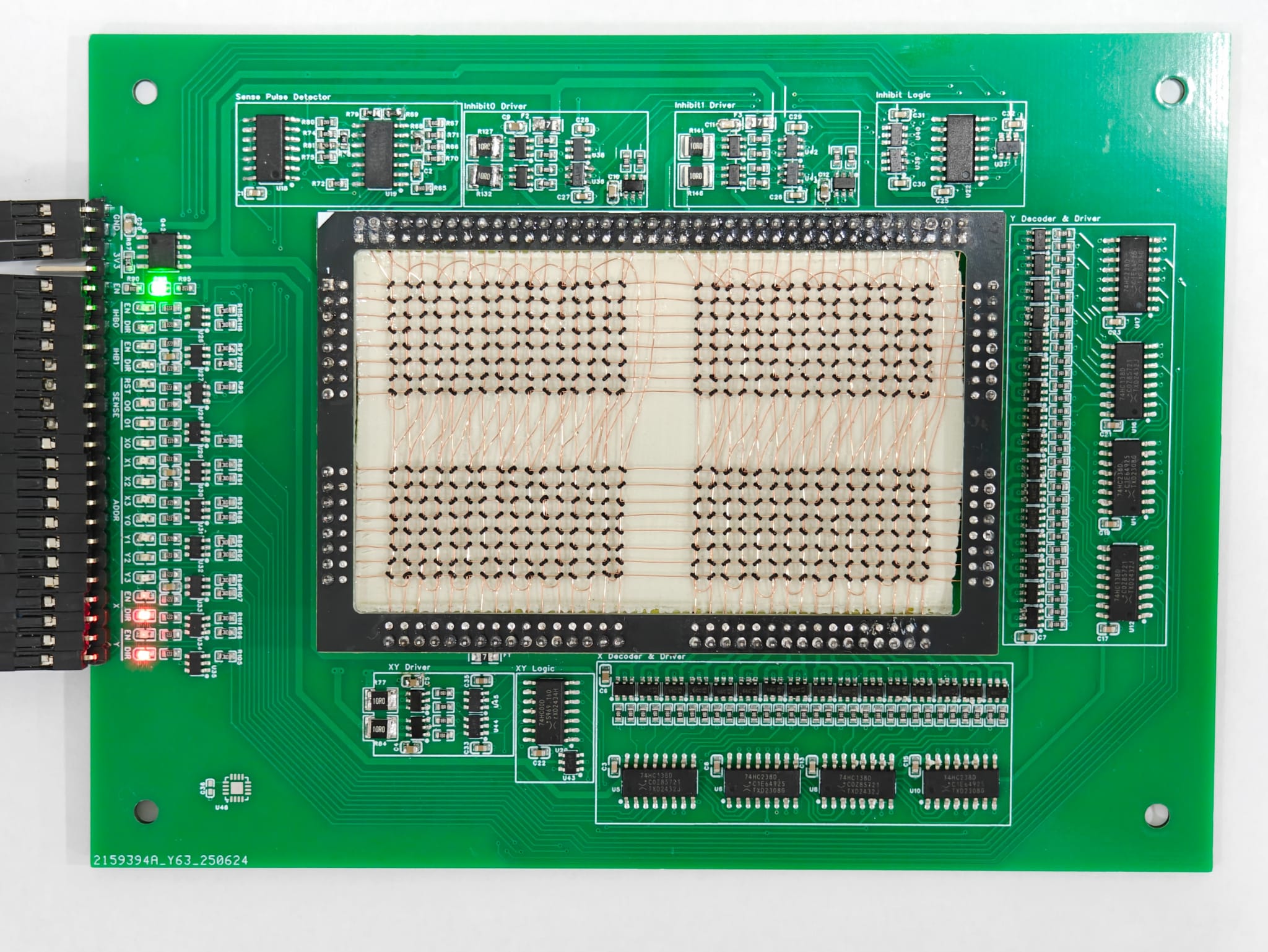 Magnetic core memory works by storing data inside the magnetic flux of a ferrite ‘core’. Magnetize it in one direction, you have a 1; the other is a 0. Sensing is current-based, and erases the existing value, requiring a read-rewrite circuit. You want the gory details? Check out [Han]’s writeup; he explains it better than we can, complete with how to wire the ferrites and oscilloscope traces to explain why you want to wiring them that way. It may be the most complete design brief to be written about magnetic core memory to be written this decade.