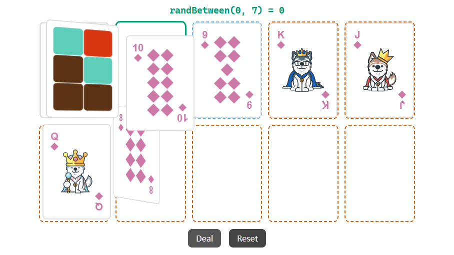 In a nutshell, the solution is to make a decision every time a new card arrives: hold onto the current card, or replace it with the new one. Each new card is given a 1/n chance of becoming held, where n is the number of cards we’ve seen so far. That’s all it takes. No matter when the dealer stops dealing, each card that has been seen will have had an equal chance of ending up the one selected.