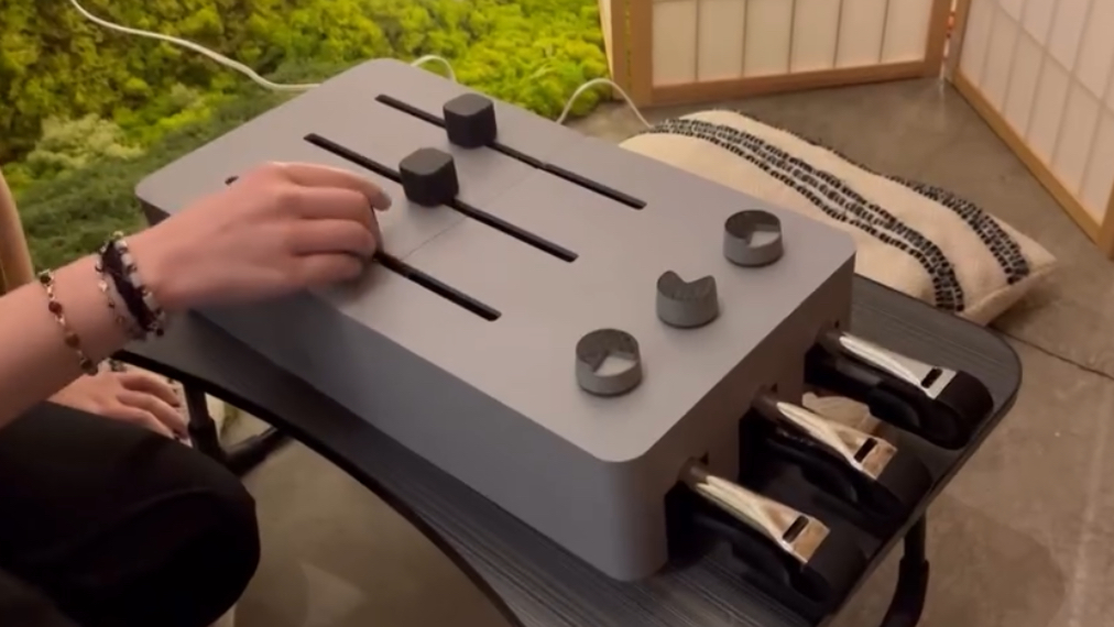 In its 3D printed case, it looks like a giant polyphonic analog synth, but under the plastic lies a pneumatic heart: the sound is actually being made by slide whistles. We always thought of the slide whistle as a bit of a gag instrument, but this might change our minds. The sliders on the synth-box obviously couple to the sliders in the whistles. The ‘volume knobs’ are actually speed controllers for computer fans that feed air into the whistles. The air path is possibly not ideal– there’s a bit of warbling in the whistles at some pitches– but the idea is certainly a fun one. Notes are played by not blocking the air path out the whistle, as you can see in the video embedded below.