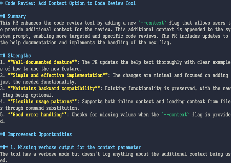 The basic use case is to evaluate PRs (pull requests) before sending them or when receiving them. He does mention that it would be rude to simply dump the tool’s comments into your comments on a PR. This really just flags places a human should look at with more discernment.