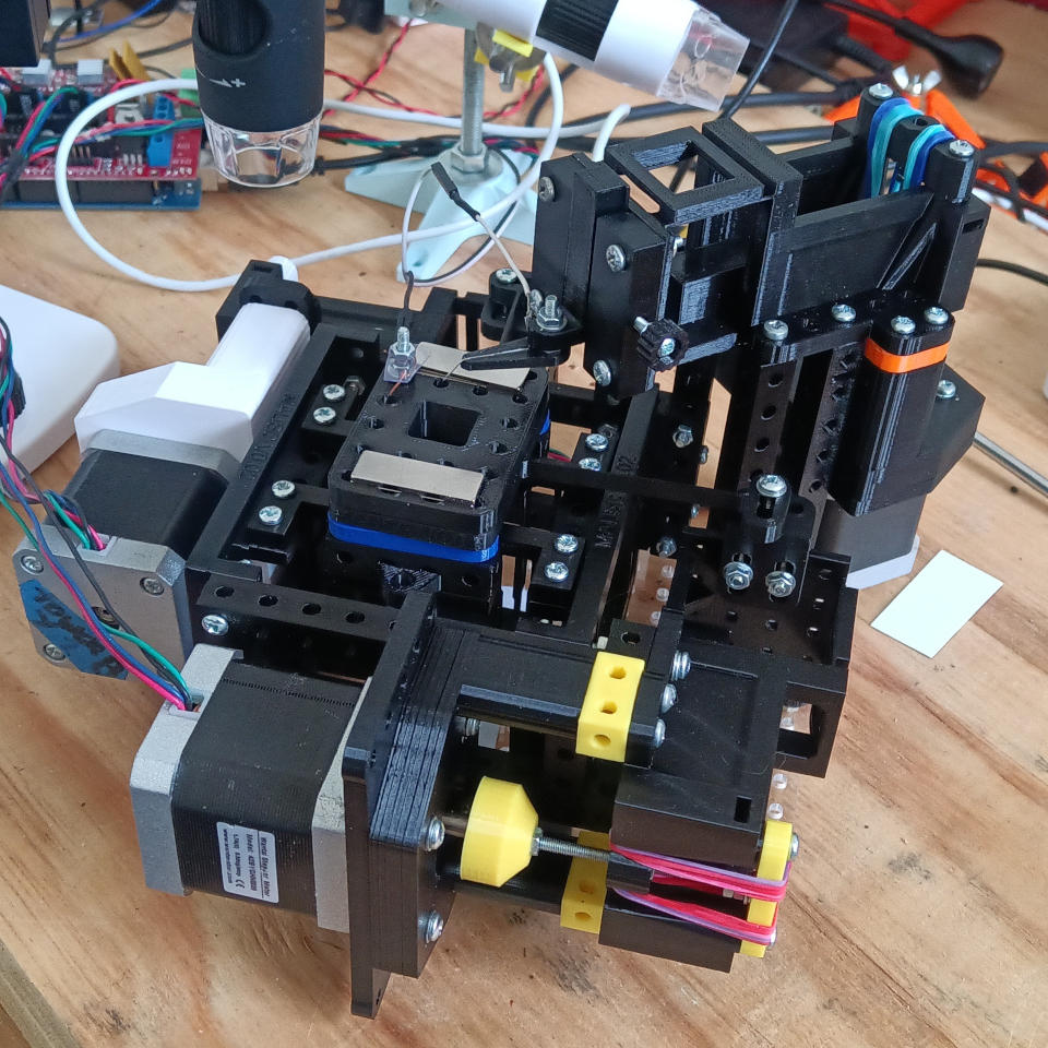 Moving precisely and accurately at such a small scale also requires something new, and that is where flexures come in. Where other 3D printers use stepper motors and rails and belts, RepRapMicron leverages work done by the OpenFlexure project to achieve high-precision mechanical positioning without the need for fancy materials or mechanisms. We’ve actually seen this part in action, when [Vik Olliver] amazed us by scribing a 2D micron-scale Jolly Wrencher 1.5 mm x 1.5 mm in size, also visible in the header image above.