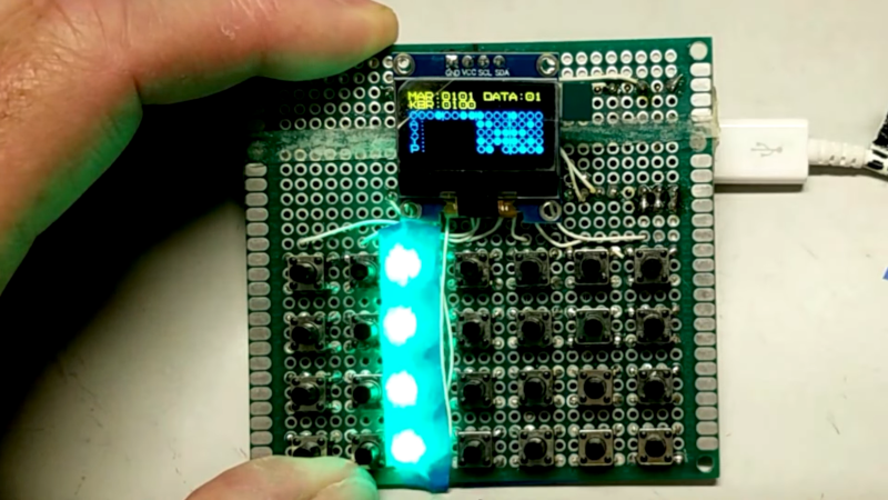 The goal was to grab the keyboard’s input and stick it into a memory address register so the data at that address could be shown on the display. However, there was a complication because memory access of this type has to be word-aligned.