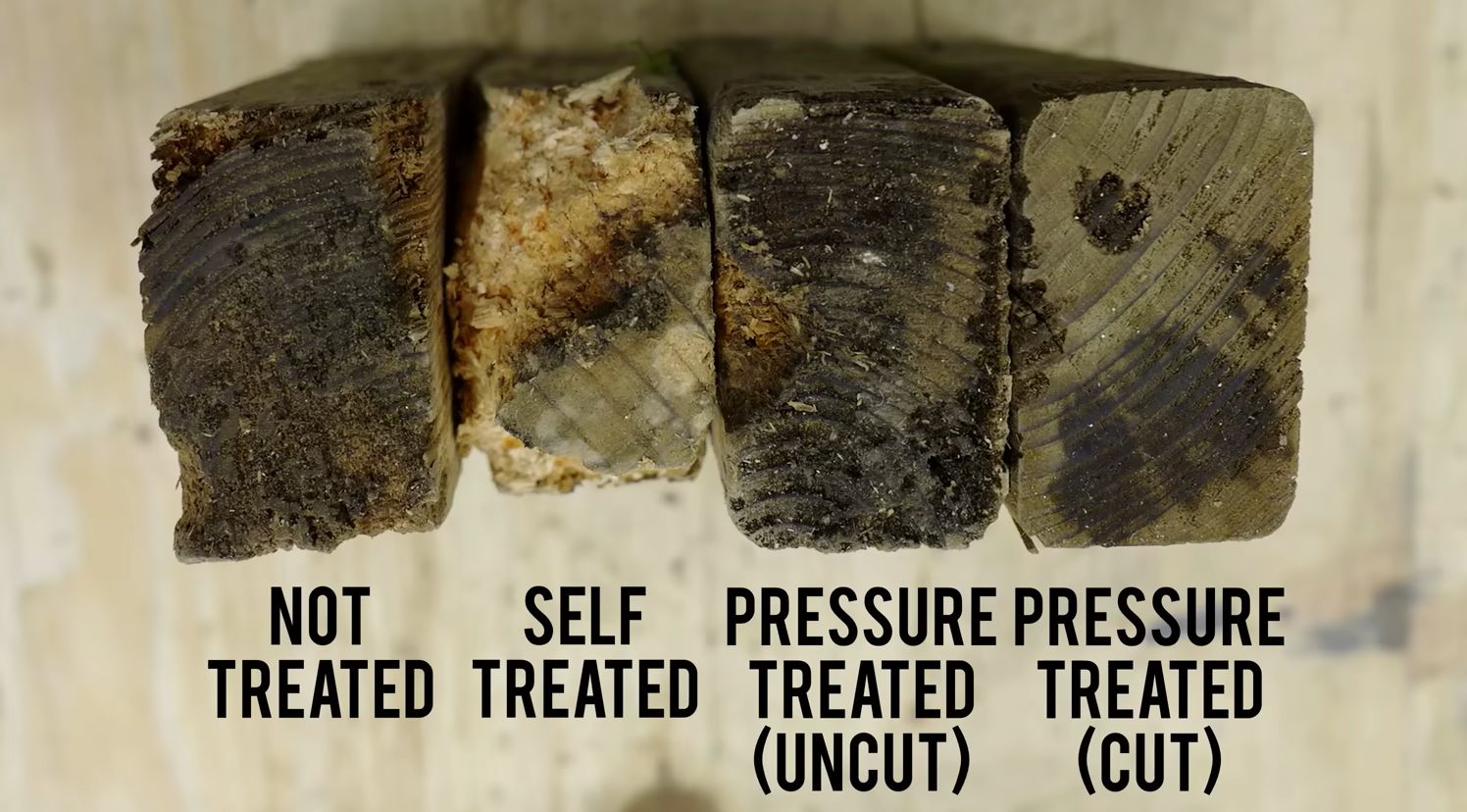 While the self-treatment gets you generally only a surface coating of the – usually copper-based – compound, the vacuum pressure treatment’s effectiveness depends on how deep the preservative has penetrated, which renders some treated wood unsuitable for being buried in the ground. Along with these factors the video correctly identifies the issue of grain density, which is why hardwoods resist decay much better than e.g. pine. Ultimately it’s quite clear that ‘simply put on a wood preserver’ isn’t quite the magical bullet that it may have seemed to some.
