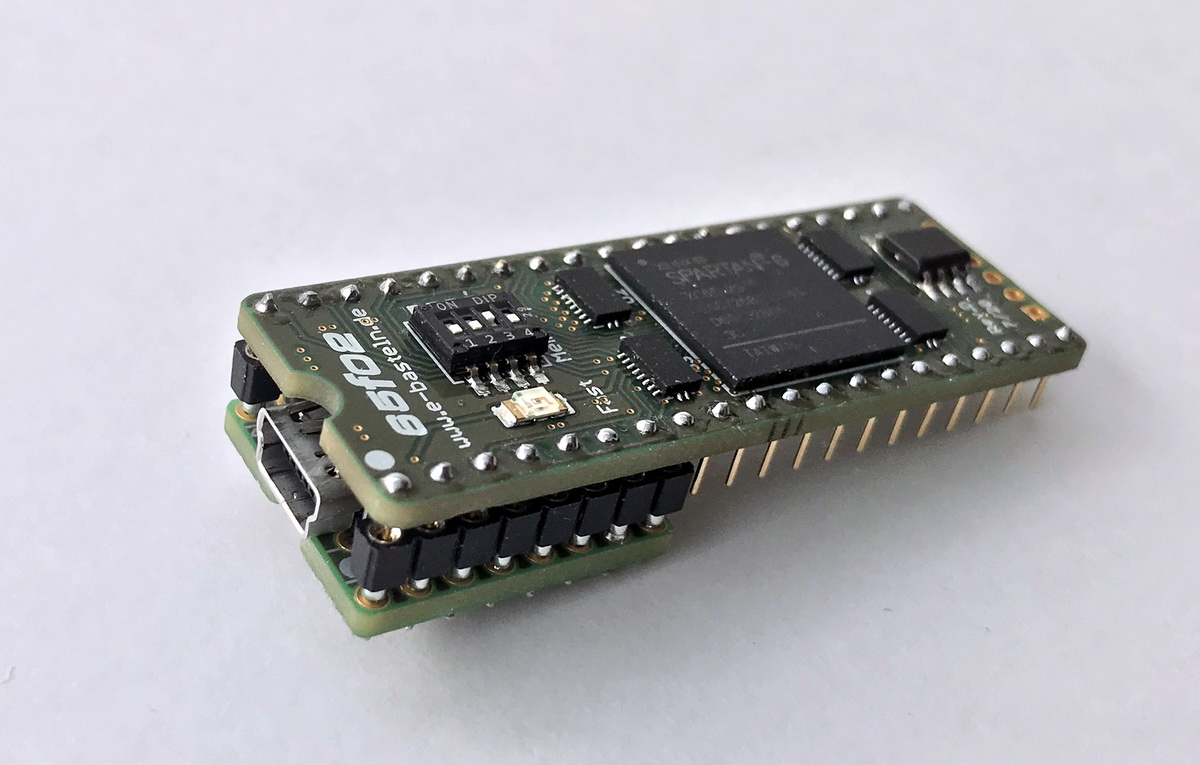 The “f” could easily be both, since at 100 MHz, the 65f02 is blazing fast by 6502 standards–literally 100 times the speed of the first chips from MOS. That speed comes from the use of a Spartan 6 FPGA core to implement the 6502 logic; making the “f” stand for “FPGA” makes sense, given that the CMOS version of the chip was dubbed the 65c02. The 65f02 is a tiny PCB containing the FPGA and all associated hardware that shares the footprint of a DIP-40 package, making it a drop-in replacement. A really fast drop-in replacement.
