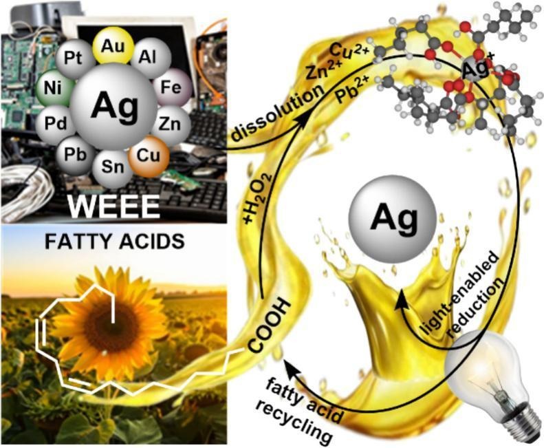 As the saying goes, “if it can’t be grown, it has to be mined”– but what about all the metals that have already been wrested from the bosom of the Earth? Once used, they can be recycled– or as this paper charmingly puts it, become ore for “urban mining” techniques. The technique under discussion in the Chemical Engineering Journal is one that extracts metallic silver from e-waste using fatty acids and hydrogen peroxide.