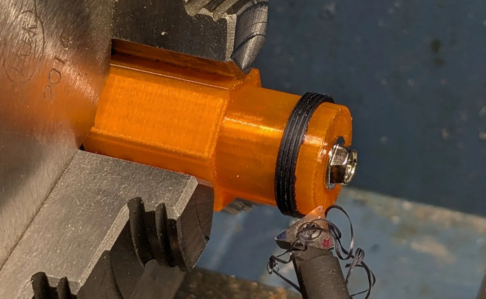 Of course, the tiny printed ring was too small and fragile to put into the chuck of the lathe, so [Ed] had to design and print a fixture to hold it. Oh, and since the lathe was only designed to cut threads in inches, he had to make a new gear to convert it over to millimeters. But at least that was a project he completed previously.