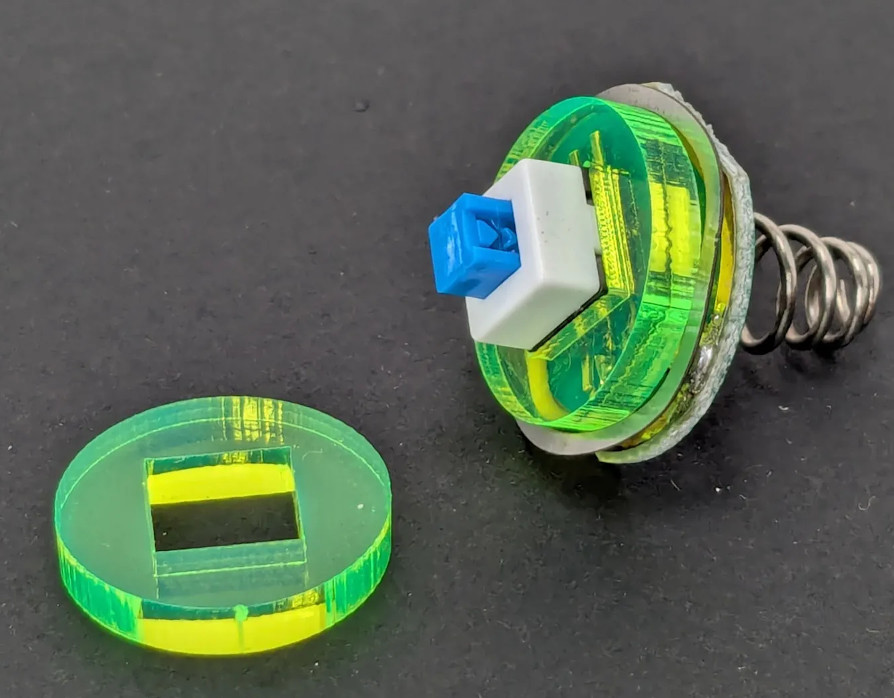 With the fine threads cut into the printed retaining ring ready to hold in the replacement button and its printed cover, you might think the flashlight was about to be fixed. But alas, it was not to be. It seems the original button had a physical stabilizer on it to keep it from wobbling around, which wouldn’t fit now that the button had been changed. [Ed] could have printed a new part here as well, but to keep things interesting, he turned to the laser cutter and produced a replacement from a bit of scrap acrylic.