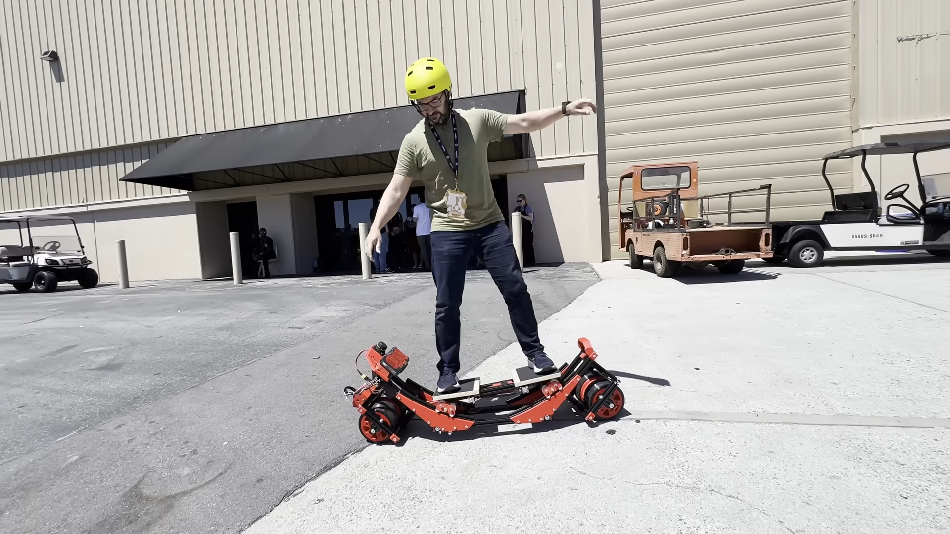 Skateboards were organically developed in the 1940s and 1950s; 30 years would then pass before the ollie was developed, unlocking new realms for skaters dedicated to the artform. The advent of powerful batteries and motors would later make the electric skateboard a practical and (un?)fashionable method of transport in more recent years. Now, [Ivan Miranda] is pushing the cutting edge of skateboarding even further, with an entirely weird build of his own design.