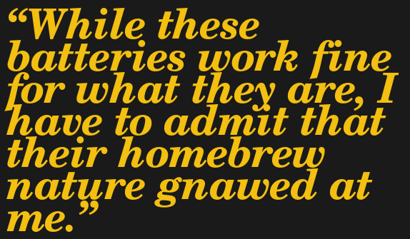 I know that posting this is likely going to open me up to considerable criticism in the comments, much of it deserved. I was clearly negligent here, at least in how I chose to store these batteries once I removed them from service. You can also ding me for trying to save a few bucks by buying second-hand batteries and modifying them myself, but let those of you who have never shaken hands with danger cast the first stone.