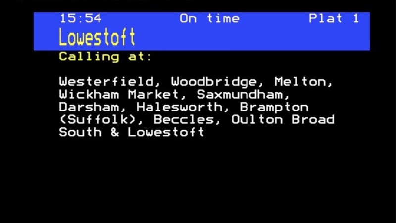 The screens were recognizably using the same graphics standards as Teletext, and thus it was no surprise back in the day to see from time to time an Acorn boot screen in a railway station.