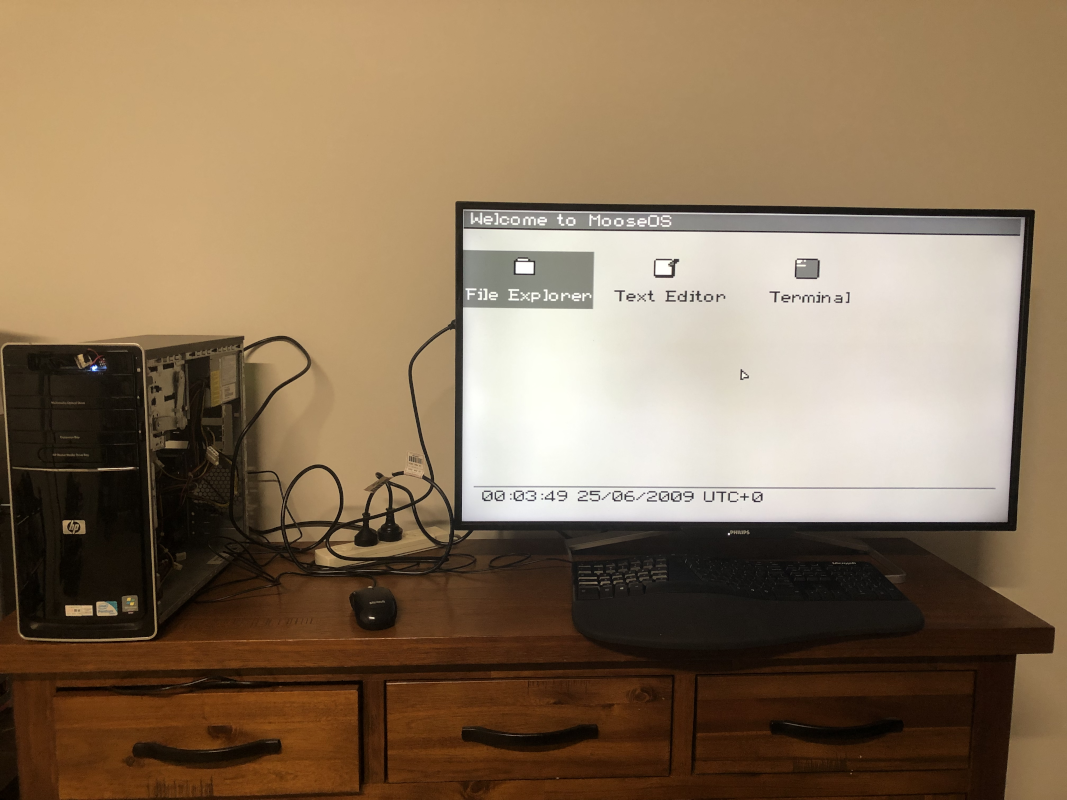 [Ethan] calls his project Moderate Overdose of System Eccentricity, or MooseOS. Original programming and testing was done in QEMU on a Mac where he was able to build all of the core components of the operating system one-by-one including a kernel, a basic filesystem, and drivers for PS/2 peripherals as well as 320×200 VGA video. It also includes a dock-based GUI with design cues from operating systems like Macintosh System 1. From that GUI users can launch a few applications, from a text editor, a file explorer, or a terminal. There’s plenty of additional information about this OS on his GitHub page as well as a separate blog post.