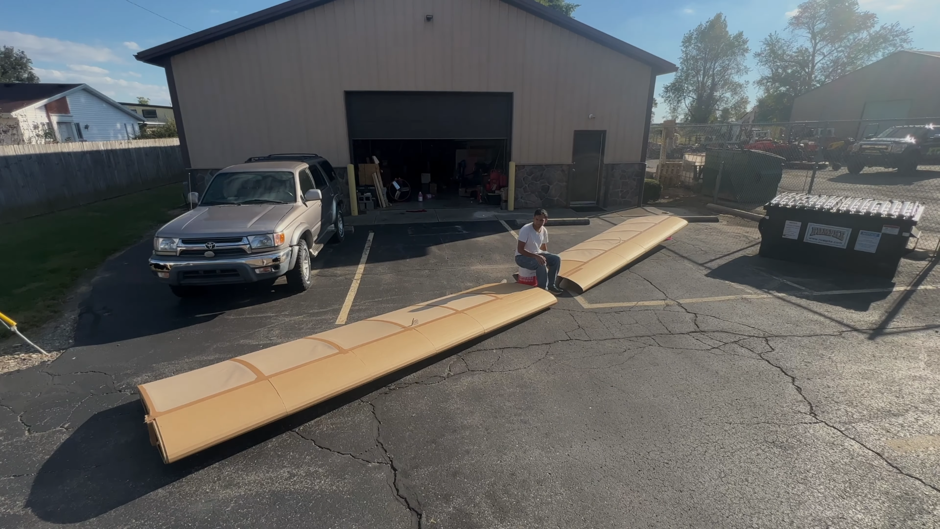 After the lessons learned from the cardboard flute orientation tests and the first wing destruction, the two wings for the final ultralight could be built. Minor changes were made from the prototype wing. After testing one wing to 150 pounds of loading, they were skinned in butcher paper to match the esthetic of cardboard. The wings came out weighing 21.8 lbs, more then ideal, but certainly workable for a single flight ultralight aircraft.