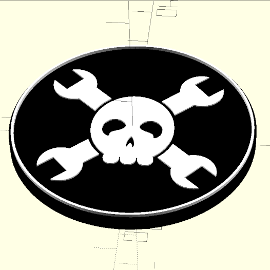 colorpart(1) translate([0,0,topdeck]) scale([.3,.3,1]) linear_extrude(height=feature_height,center=true) center2d([118, 108]) import("wrencher2.svg");