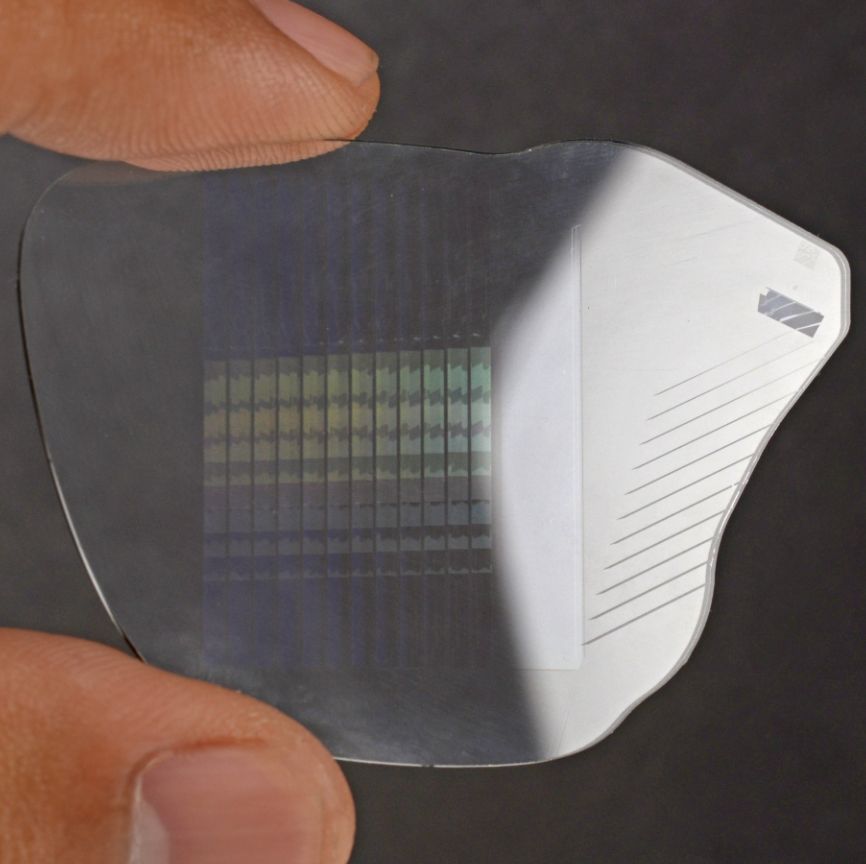 The geometric waveguide glass of the Meta Ray-Ban Display glasses. (Credit iFixit)