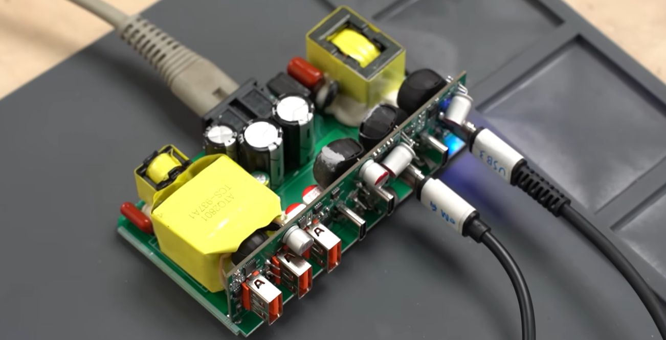 We have seen many scam USB chargers appear over the years, with a number of them being enthusiastically ripped apart and analyzed by fairly tame electrical engineers. Often these are obvious scams with clear fire risks, massively overstated claims and/or electrocution hazards. This is where the “600W” multi-port USB charger from AliExpress that [Denki Otaku] looked at is so fascinating, as despite only outputting 170 Watt before cutting out, it’s technically not lying in its marketing and generally well-engineered.
