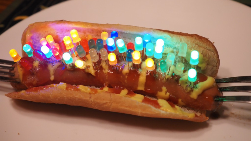 The Hackaday 2025 Component Abuse Challenge is all about abusing electronic components in the service of making them do things they were never intended to. It’s not the 2025 Food Abuse Challenge, so in the case of [Ian Dunn]’s hot dog pressed into service as an LED tester, we’ll take the ‘dawg to be a component in its own right. And by any measure, it’s being abused!
