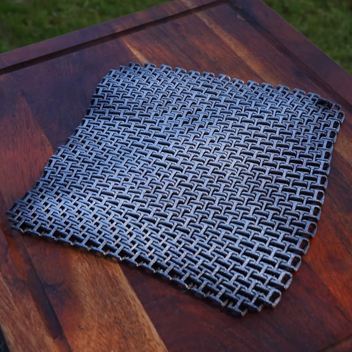 He uses tough PLA to crank out a bed worth of what looks like [ZeroAlligator]’s PipeLink Chainmail Fabric, which just so happens to be the trending result on Bambu’s MakerWorld currently. The video shows several types of mail on the printer, but the test dummy only gets the one H-type pattern, which is a pity — there’s a whole realm of tests waiting to be done on different mail patterns and filament types.