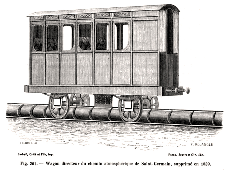 Many of these atmospheric trains didn’t put the passengers in the capsule, but used the capsule to move a railcar. The Paris St. Germain system, which opened in 1837, used this idea.