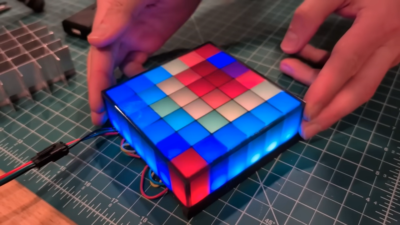 The material is commonly referred to as “Black LED Acrylic” or similar. In this case, it was sourced from TAP Plastics, though you can source similar acrylic from other vendors, too. From first glance, it looks like any other piece of black acrylic plastic. However, shine an LED through it, and it will be beautifully diffused and smoothed out to wonderful visual effect. A simple test of a 3×3 array of LEDs behind a 3D-printed grid shows how good this can look. It almost entirely eliminates hot spots, and the result looks like a display built out of juicy glowing cubes. The duo used this material to produce giant pixel art lanterns for their local parade. We only get a glimpse at the final build, but it appears giant Pacman and Blinky totems are on the way.