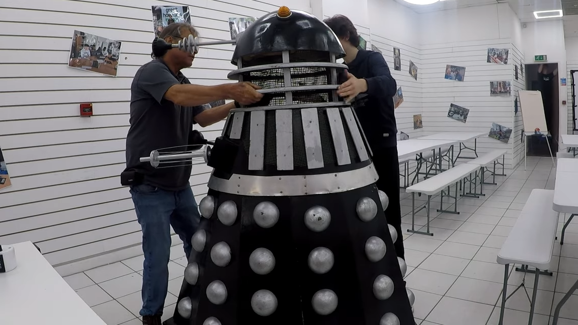 Not every impulsive purchase on eBay leads to possession of a wooden Dalek, but when a friend did exactly that, [Tony Goacher] did his part to turn ‘Dalek Bob’ into a motorized and remote-controlled unit of impressive stature.