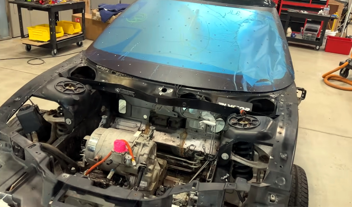 Along the way they find an EV1 charger hiding among a stock of pickup chargers, take us through the vehicle electronics, and find some galvanic corrosion in the car’s structure due to water ingress. The windscreen has a huge hole, which they cover with a plastic wrap in order to 3D scan so they can create a replacement.