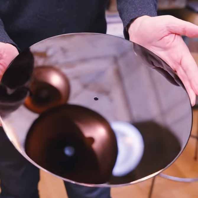 Cutting a lacquer master is the intricate process by which lacquer disks, used as the masters for vinyl records, are created. These glossy black masters — still made by a company in Japan — are precision aluminum discs coated with a special lacquer to create a surface that resembles not-quite-cured nail polish and, reportedly, smells like fresh paint.