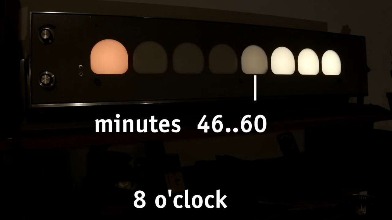 [typo]’s clock fits the traditional binary counting method with the hours on the left side of its face. On the other hand, its right side presents a lighting gradient depending on the completion of the hour. While this is simple in principle, [typo] chose to correct what many don’t consider when deploying visual gradients. The human eye doesn’t see everything exactly as it is, which creates a rough logarithmic curve that gets corrected for in the binary/digital hybrid clock.