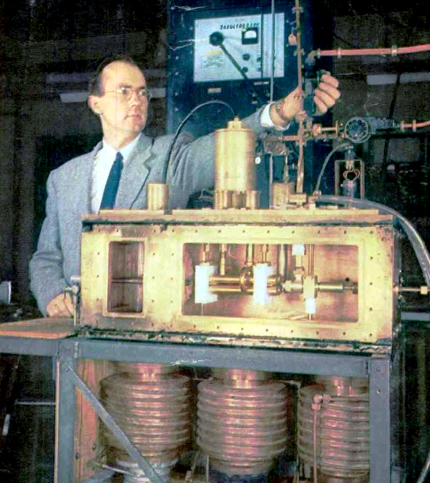 The maser grew out of radar research in the early 1950s. Charles Townes and others at Columbia University used ammonia in a cavity to produce a 24 GHz maser, completing it in 1953. For his work, he would share the 1964 Nobel Prize for physics with two Soviet physicists, Nikolay Basov and Alexander Prokhorov, who had also built a maser.
